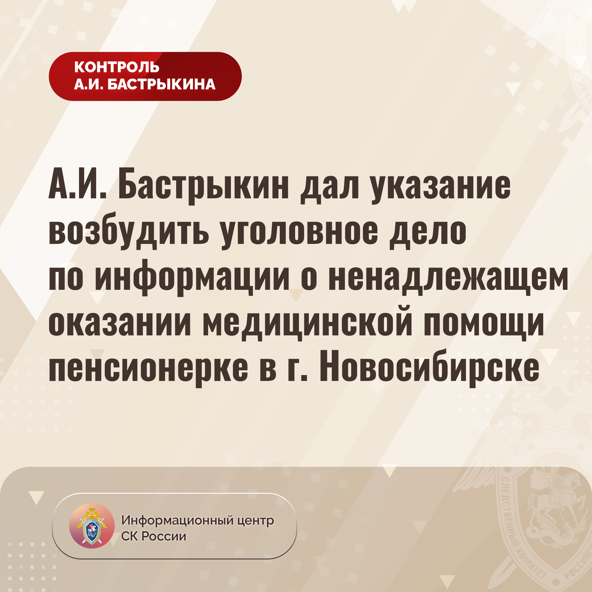 А.И. Бастрыкин дал указание возбудить уголовное дело по информации о ненадлежащем оказании медицинской помощи пенсионерке в г. Новосибирске