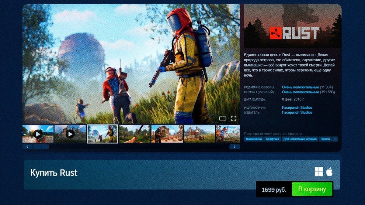 ⚡️В Steam подняли цены на Rust для России и Украины.