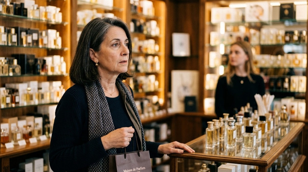 Я стояла у стеллажа и держала в руках флакон, который даже не собиралась нюхать. Руки были холодными.
