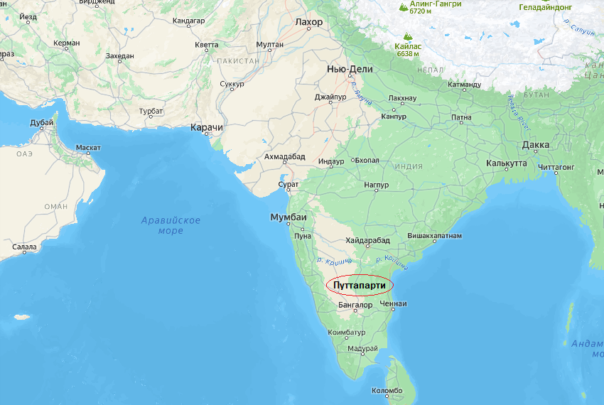 В Индию мы прилетели в Бангалор на самолете из Москвы. (Пересадка в Абу - Даби). Далее на такси до Путтапарти.