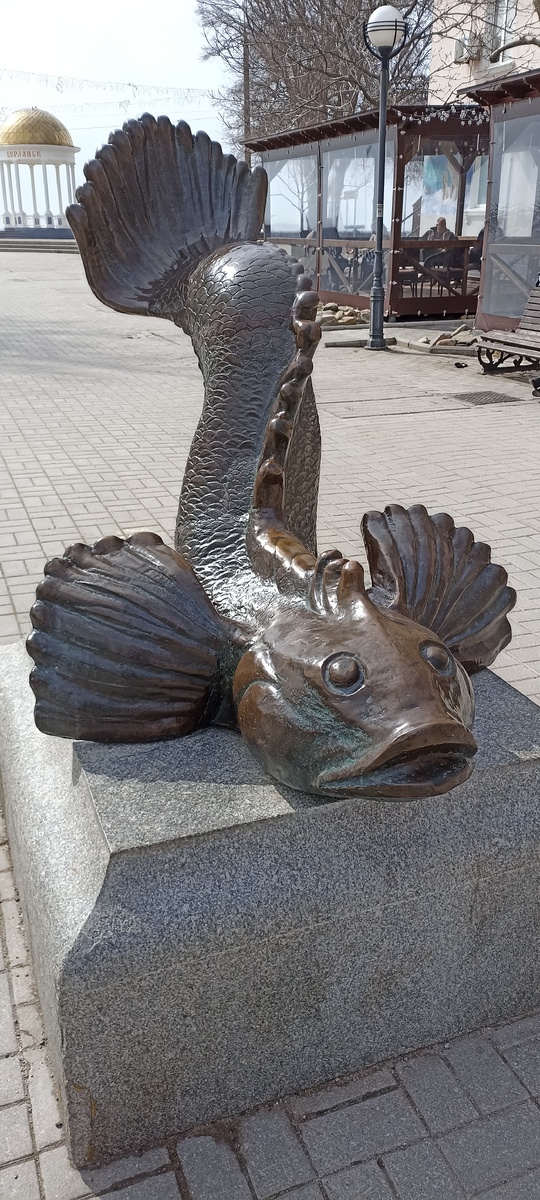 А вы никогда не задумывались, что иногда самый маленький герой может стать самым большим памятником? ))) Короче, история такая: Бердянск, Приморская площадь, и вот он — Бычок-кормилец. Не большой, не пафосный, а просто рыбка на сковородке. Но за этой простотой — целая история. В тяжелые послевоенные годы, когда город ещё не был промышленным гигантом, именно эта маленькая рыбёшка спасала людей от голода. Дешёвая, полезная, с рыбьим жиром — то, что доктор прописал. Рыбаки ловили её тоннами, артели жили за счёт улова, и в прямом смысле — выживали. Знали об этом, вот и я тоже не знал до посещения Бердянска? Маленький бычок, а столько судеб вытянул! Памятник открыли в 2001 году — идея принадлежала местному ихтиологу Вячеславу Мирошникову, а воплотили её архитекторы Мироненко и Михайлов. Бронзовый бычок на гранитном постаменте, табличка «Бычку-кормильцу» — всё просто, но с душой. И знаете, что самое трогательное? К 70-м годам бычок почти исчез из Азова, люди решили, что выловили всё, и поста
