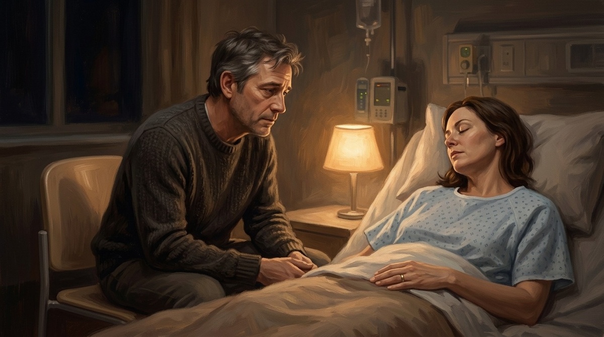Больница ночью живёт своей жизнью. Где-то капает, кто-то ходит по коридору, гудит аппаратура. Я сидел на пластиковом стуле, спина начинала ныть, и смотрел на это кольцо.