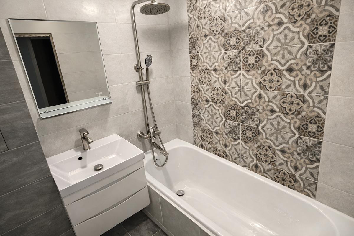 В практике мастеров был показательный случай: заказчики купили красивую плитку формата 120×60 см ещё до начала ремонта. Плитка выглядела идеально — современная, стильная, именно такую они хотели.