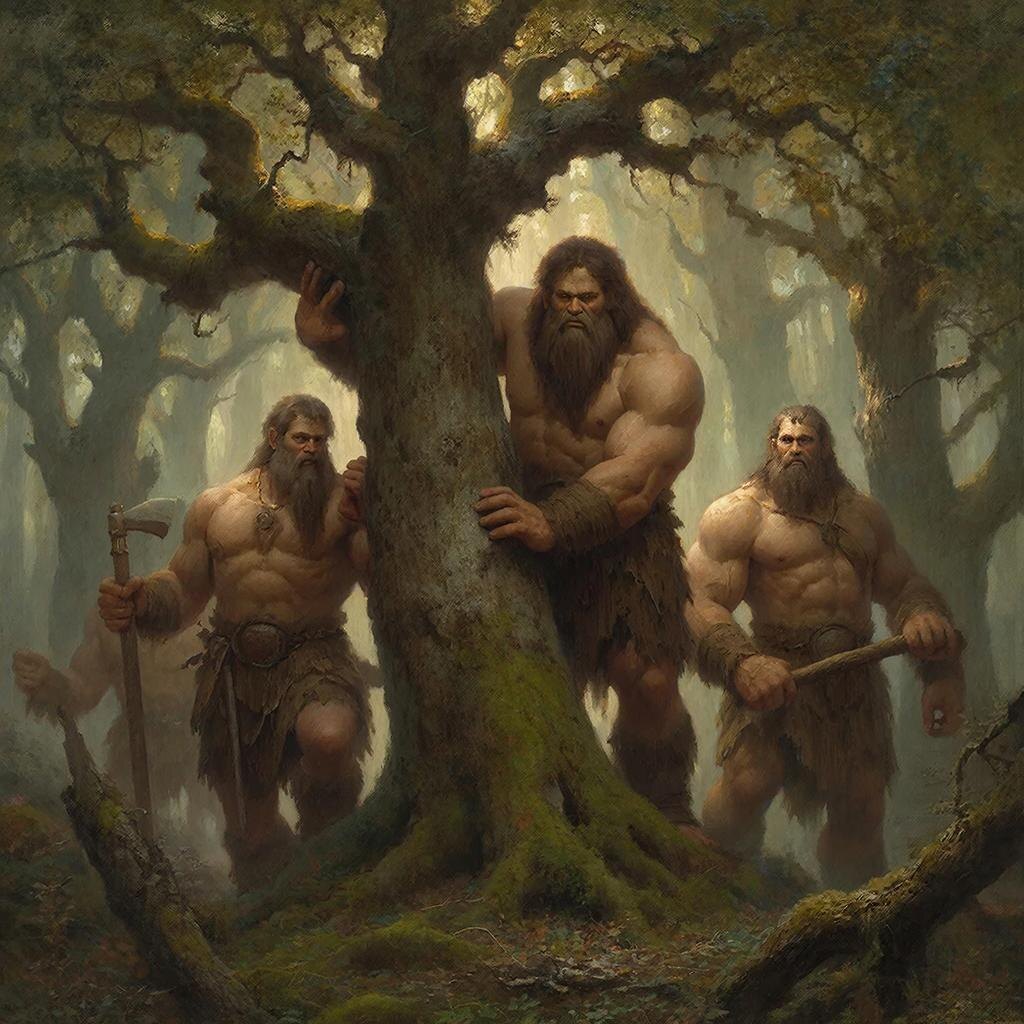 - Великаны-людоеды — деградировавшие группы, ставшие каннибалами, истреблёнными героями.