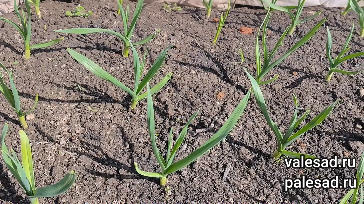 Чеснок не пожелтеет, если так подкормить его весной. Чем подкормить чеснок весной. Очень важно правильно подкормить весной озимый чеснок, чтобы дать хороший старт его росту и развитию. Первую подкормку проводят, когда почва прогреется до +8-10 градусов. Именно в этот период чеснок начинает хорошо усваивать все питательные вещества из почвы. Сейчас очень важно нарастить зеленую массу, так как именно от этого зависит качество урожая. Если будет обильная зеленая масса, то и головки чеснока будут крупные. В качестве первой подкормки чеснок необходимо подкормить азотным удобрением. Я беру одну столовую ложку аммиачной селитры на 10 л воды. Пока почва недостаточно прогрелась, именно это удобрение будет хорошо усваиваться растениями. Также в лейку добавляю еще одно удобрение - магния сульфат одну столовую ложку. Он улучшает фотосинтез и делает листья на чесноке зелеными, то есть в одной лейке растворяю по одной столовой ложке аммиачной селитры и магния сульфат. Делаю бороздки возле чеснок