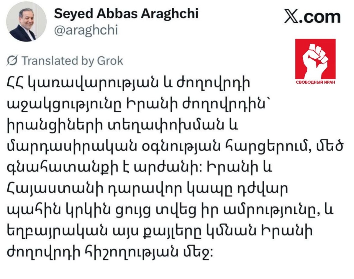 🇮🇷🇦🇲 Арагчи поблагодарил Армению за помощь 🚑