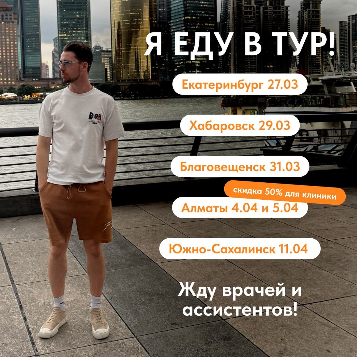 Коллеги! Знаете, есть что-то особенное в том, чтобы выйти из экранов и встретиться с вами вживую… Я ждал этого момента🖤 Академия ADA отправляется в большой весенний тур, и я лично приеду к вам, чтобы мы вместе разобрали: как выстроить безупречную командную работу, создать доверительные отношения с пациентами, и повысить доходность клиники? Всё разбираем на практике, в паре врач—ассистент! Будет живо, честно, и с ответами на ваши вопросы🔥 Где увидимся: 📍 Екатеринбург — 27 марта 📍 Хабаровск — 29 марта 📍 Благовещенск — 31 марта 📍 Алматы — 4 апреля Я очень хочу вас видеть! Приходите. Давайте наконец познакомимся лично и сделаем работу наших клиник слаженнее и эффективнее 🙌🏻