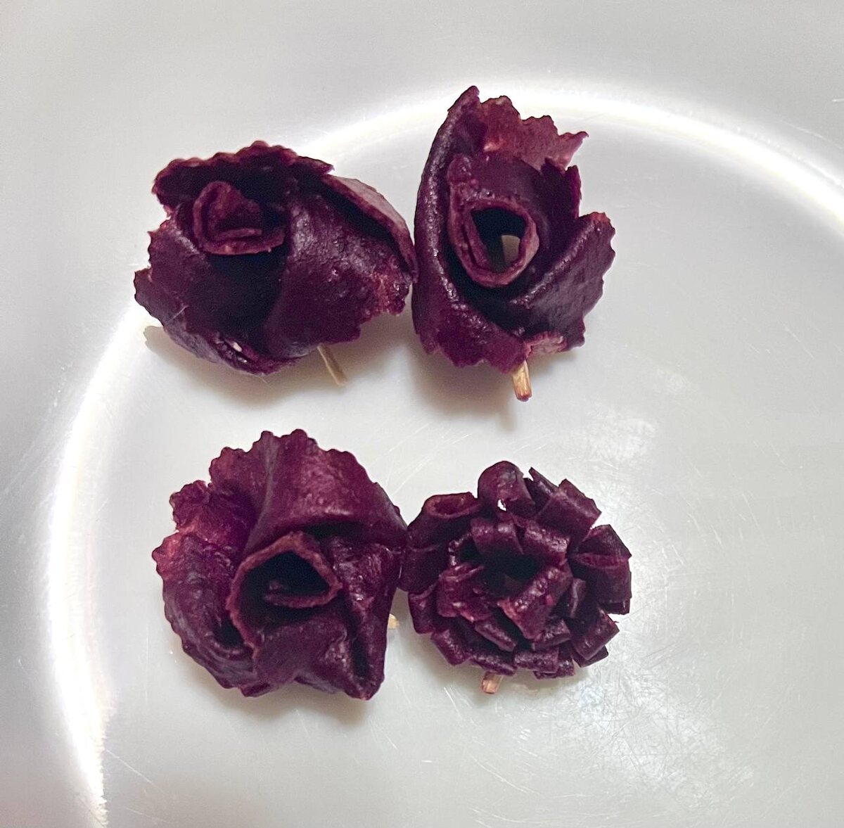 Тренируюсь по мастер-классу известной пастилье крутить розочки и астры для подарочных коробочек🎁🌼🌹Пока только из черносмородиновой пастилы, другая пока сохнет😊