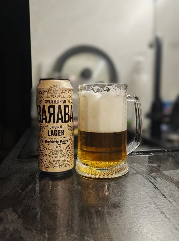 Всем привет! Продолжаем расширять кругозор пенного и сегодня на пробе новое (для меня) пиво из Боснии и Герцеговины. Кстати кто не гугля скажет где находится страна и какая у нее столица?Пишите в комменты Про пивоварню Баня «Баня-Лука»(Banjalučka Pivara) я писал в Мысли о пиве ч. 68 (Nektar), поэтому сразу перейду к лагеру. Барабашка квалифицируется как светлое пастеризованное фильтрованное пиво. Имеет среднюю крепость крепость - 4,2% и довольно малую плотность 10%. Состав: вода, солод пивоваренный ячменный,несоложеный ячмень,хмель, дрожжи. Продается в банках по 0,5 л. Дизайн стильный, оригинальный, напомнил рекламные газетные объявления конца XIX века и начала XX века Цена: около 100 рублей. Срок годности: 1,5 года,что прям много для пива. Шапка пены чуть кремового цвета, высокая плотная и держится долго, на вкус горькая. Аромат пива приятный, яркий хмельной, немного с кислинкой. Лагер прозрачный. Цвет барабашки - насыщенный янтарный. Вкус с яркой хмельной горчинкой, но при этом прия