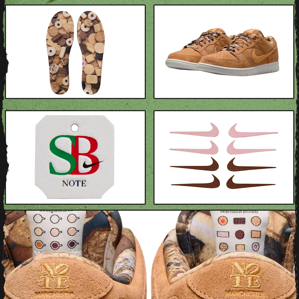 Новая пара Nike SB Dunk Low «Brew & Biscuits» — это же настоящая чайная церемония в британском стиле. Тематические детали, теплые оттенки, принт с печеньем, надписи «Strength of Brew» и отсылка к следу от кружки на подошве — продумано. Еще есть сменные свуши: похожи на уровень крепости чая, милота. Больше интересного на нашем сайте POIZON