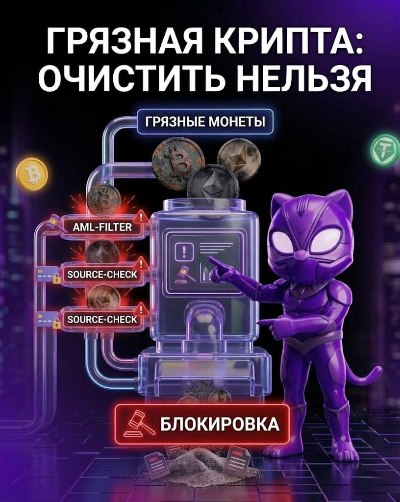 Грязной называют криптовалюту, которая участвовала в незаконных операциях: мошенничестве, торговле запрещёнными товарами, взломах бирж, отмывании денег. Каждая транзакция в блокчейне записана навсегда — и специальные сервисы умеют отслеживать историю любого кошелька. Если монеты когда-то побывали на адресе, связанном с преступлением, они получают метку. И эта метка никуда не исчезает — даже если крипту десять раз перепродать. Компании вроде Chainalysis, Elliptic и Crystal Blockchain анализируют блокчейн и присваивают адресам «риск-скоры». Крупные биржи и платёжные сервисы подключены к этим системам и автоматически проверяют каждое поступление. Если на биржу пришли монеты с высоким риском — аккаунт блокируется, средства замораживаются, а данные передаются в правоохранительные органы. Причём владелец счёта может и не знать, что получил «грязные» монеты — например, принял оплату от незнакомца. Миксеры (тумблеры) Сервисы, которые смешивают транзакции разных пользователей, чтобы запутать сл