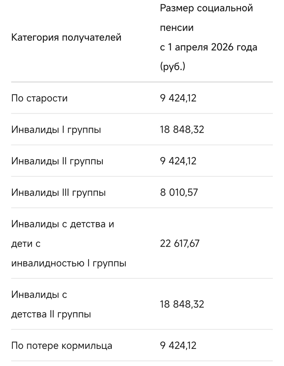 С 1 апреля 2026 года социальные пенсии в России проиндексируют на 6,8%. Это решение утверждено постановлением правительства от 26 февраля 2026 года №197. Индексация коснётся около 4,3 млн россиян. Социальная пенсия, в отличие от страховой, не зависит от трудового стажа и пенсионных баллов. Её назначают людям, которые не могут получать страховую пенсию, а именно: Важно: социальную пенсию перестают выплачивать, если получатель устраивается на работу по трудовому или гражданско-правовому договору. После индексации в апреле 2026 года средний размер социальной пенсии достигнет примерно 16 500 рублей. Прибавка в зависимости от категории пенсионера составит от 510 до 1 440 рублей. В регионах с повышенным коэффициентом (например, в Оренбургской области он составляет 1,15) суммы могут быть выше. Перерасчёт осуществляется автоматически: Социальный фонд России самостоятельно скорректирует выплаты с 1 апреля. Пенсионерам, получающим социальную пенсию, предпринимать дополнительные действия не