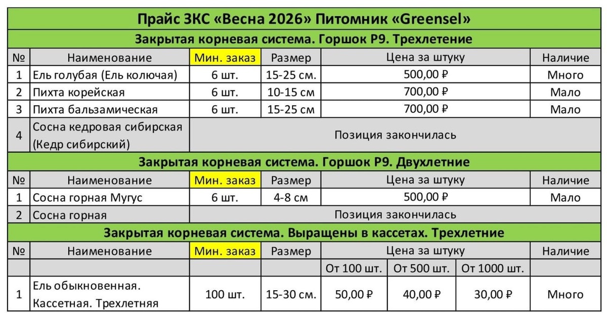 ) Приступаем к посеву сеянцев Пихты корейской ——————— ✅ Пихта корейская есть в наличии: 3х летка ЗКС (закрытая корневая система) в горшках р9 *В грунт добавлено пролонгированное удобрение Осмокот (Osmocote), действие на 6 месяцев Растения крепкие, здоровые, закаленные, зимуют в естественных условиях, под снегом ———————— 🩸ОБРАЩАЕМ ВАШЕ ВНИМАНИЕ прайс на осень разместим здесь в начале ИЮНЯ и уже начнем принимать предзаказы (бронь) на осень 💬 Начало отправок с сентября💬 🌲🌲🌲🌲🌲🌲🌲🌲 ПО ОФОРМЛЕНИЮ ЗАКАЗА —- ВОПРОСЫ писать в Телеграм @LessRaido или МАХ 89053935050
