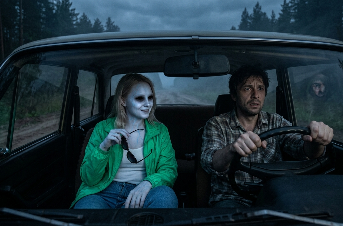 Она стояла на обочине, у самого леса.Не шла, а ждала, глядя прямо на мою машину. Изумрудная куртка на фоне мрачных елей казалась чужеродным объектом, багом в матрице. Она подняла руку с вытянутым большим пальцем. Традиционный жест попутчика.