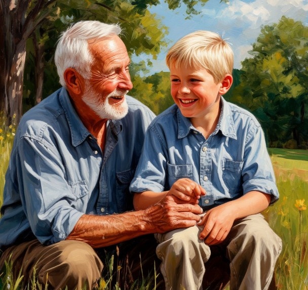 В давние времена, когда леса были гуще, а реки полноводнее, жил в одной деревне старец по имени Доброслав. Волосы его были белы, как первый снег, а глаза сияли мудростью, накопленной за долгие годы. Доброслав был известен своей добротой и умением находить свет даже в самые темные дни. Однажды, когда солнце уже клонилось к закату, окрашивая небо в багряные и золотые тона, в деревню пришла весть о богатом урожае. Зерно было тучно, плоды изобильны, а мед в ульях сладок, как никогда. Народ ликовал, и в воздухе витал дух праздника. Доброслав, сидя на крыльце своего скромного дома, наблюдал за весельем. Он видел, как молодые парни и девушки кружились в хороводе, как старики делились историями у костра, как дети с заливистым смехом гоняли друг друга. И в сердце его разливалась тихая, но глубокая радость. Он поднял свои морщинистые руки к небу и прошептал: "О, веселие мое! Радость моя велика, яко море безбрежное! Душа моя поет, яко соловей в весеннем саду. Благодарю тебя, Боже, за сие благоден