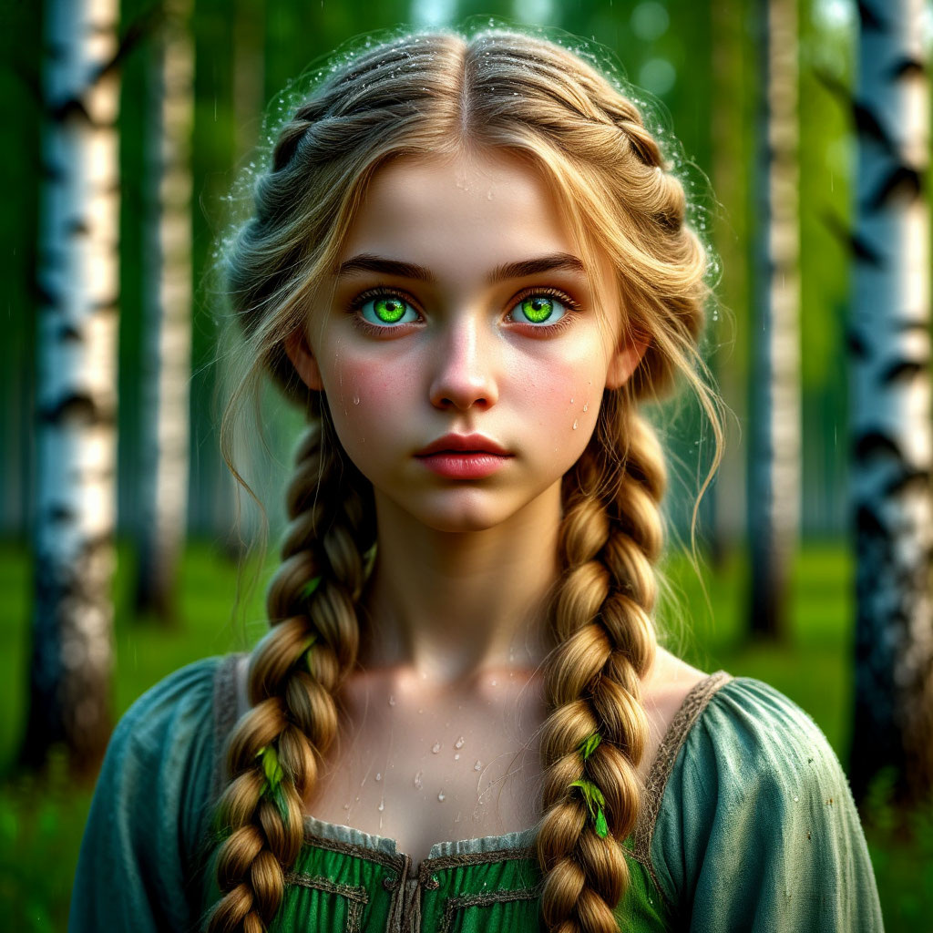 Она выпрямилась. Медленно, с хрустом, будто распрямлялось само время. Спина, согнутая годами, вытянулась, плечи расправились, голова поднялась. Морщины разгладились, исчезли, как тает утренний иней под лучами солнца. Чёрный платок упал с головы, открыв длинную, тяжёлую русую косу. Из-под старческой, дряблой кожи явилось лицо молодое, прекрасное, с тонкими, строгими чертами, с глазами — ярко-зелёными, как чистая весенняя зелень.