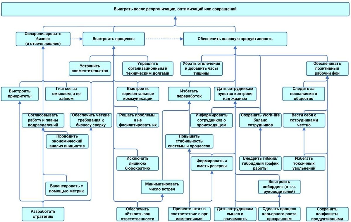 Главное возражение - автор схемы не упомянул слово "изменения", поэтому не написал про создание этой самой команды изменений (а до этого понимание необходимости этих самых изменений), планирование необходимых быстрых побед на пути и т.п. по классике. Ну и есть вопросы к связям между блоками, необходимости гибкого/гибридного графика и т.п. Но большая чась вопросов - годная, поэтому пусть будет тут.