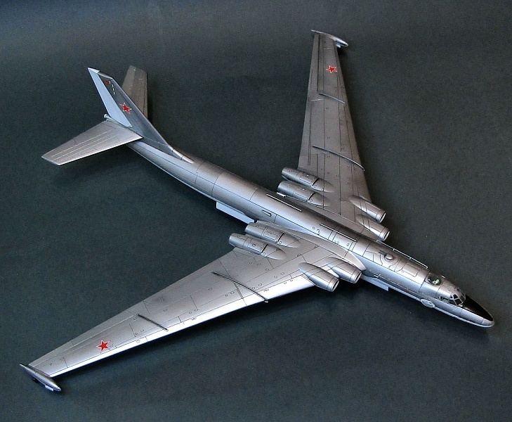 Легендарный советский бомбардировщик, созданный под руководством выдающегося авиаконструктора В.М. Мясищева. Обзор данного набора имеется в сети, от себя хочу добавить, что его сборка не по зубам новичкам, все детали требуют обработки тщательной подгонки. Грунтовал модель серым Тамиевским грунтом. Верх красил Тамиевским металликом серии LP с лёгким панельным эффектом разными металликами. Смывал Тамиевскими смывками чёрного и светло-серого оттенков. Финишное покрытие полуглянцевым лаком от Тамии.