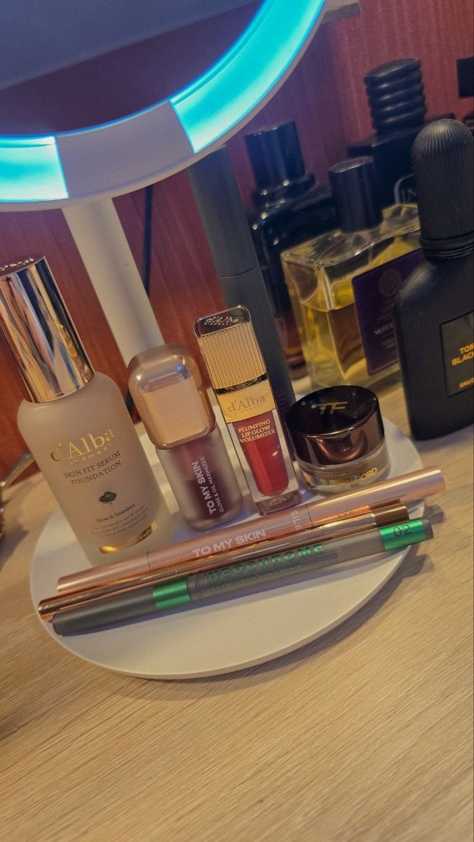 Приятно удивили продукты to my skin - карандаш с кисточкой в оттенке silent power 03 и блеска масло для губ в оттенке crimson kiss 03. Еще пару новичков в моей косметичке блеск для губ от d'Alba в оттенке posh rose и карандаш для губ от nikk molle в оттенке 509 незабываемая. Для глаз: тушь darling в винном оттенке, тени tom ford 01 platinim и моя любимка карандаш influence beauty в оттенке 02 neo green Для лица очень нравится тональный серум от d'Alba c spf 50+ идеально на лето, он очень легкий с шикарным финишем!