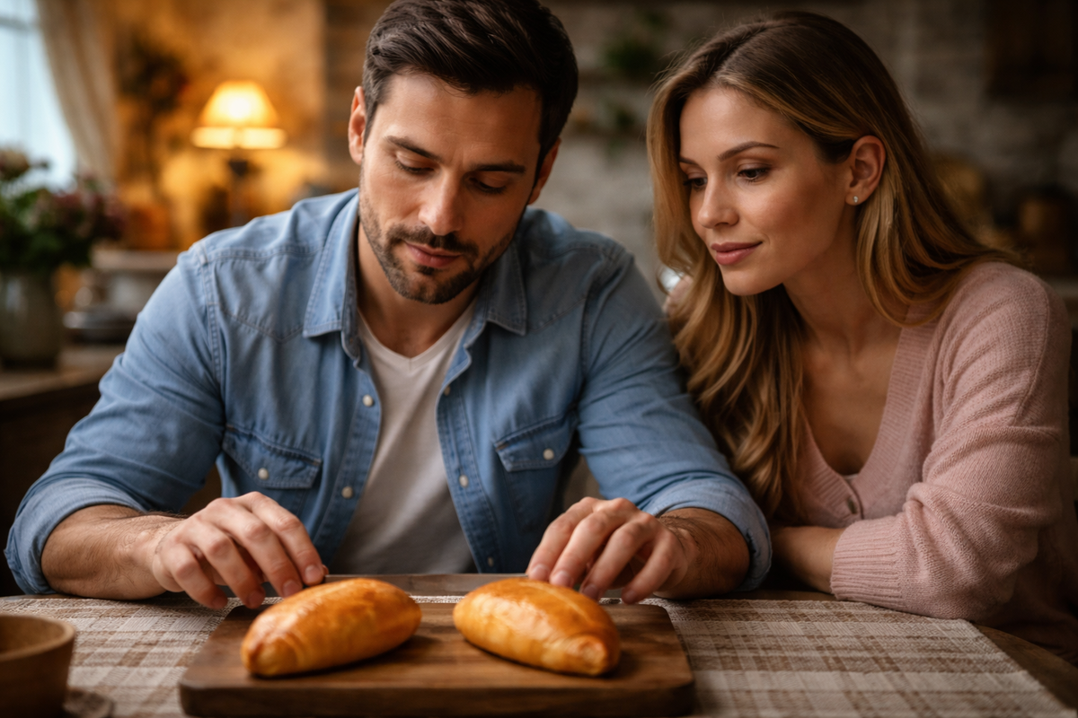 И вот, несколько дней спустя, когда в доме царила тишина, они вместе сели за стол и решили попробовать пирожки. Муж взял левый, Марина — правый, и вдруг в доме как будто рассеялся лёгкий мистический свет. Они рассмеялись: оказалось, что оба пирожка были одинаковыми, и весь смысл был не в самом выборе, а в том, как они вместе приняли его.