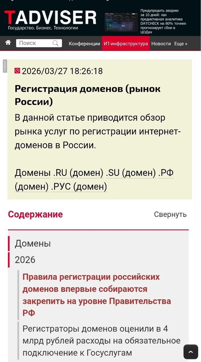 Я уже писала в своем канале о том, что нас ждут новые правила регистрации доменных имен, показывала, как это обсуждают регистраторы, рассказывала о грядущих переменах слушателям на курсах ВШЭ. Настала очередь для комментариев в СМИ. ➡️ Статья в TADVISER по ссылке, целое исследование про рынок доменных имен. LinkedIn | ВК | Одноклассники | TenChat | Instagram* | FB* | Дзен | max *принадлежит корпорации Meta, чья деятельность запрещена в РФ.