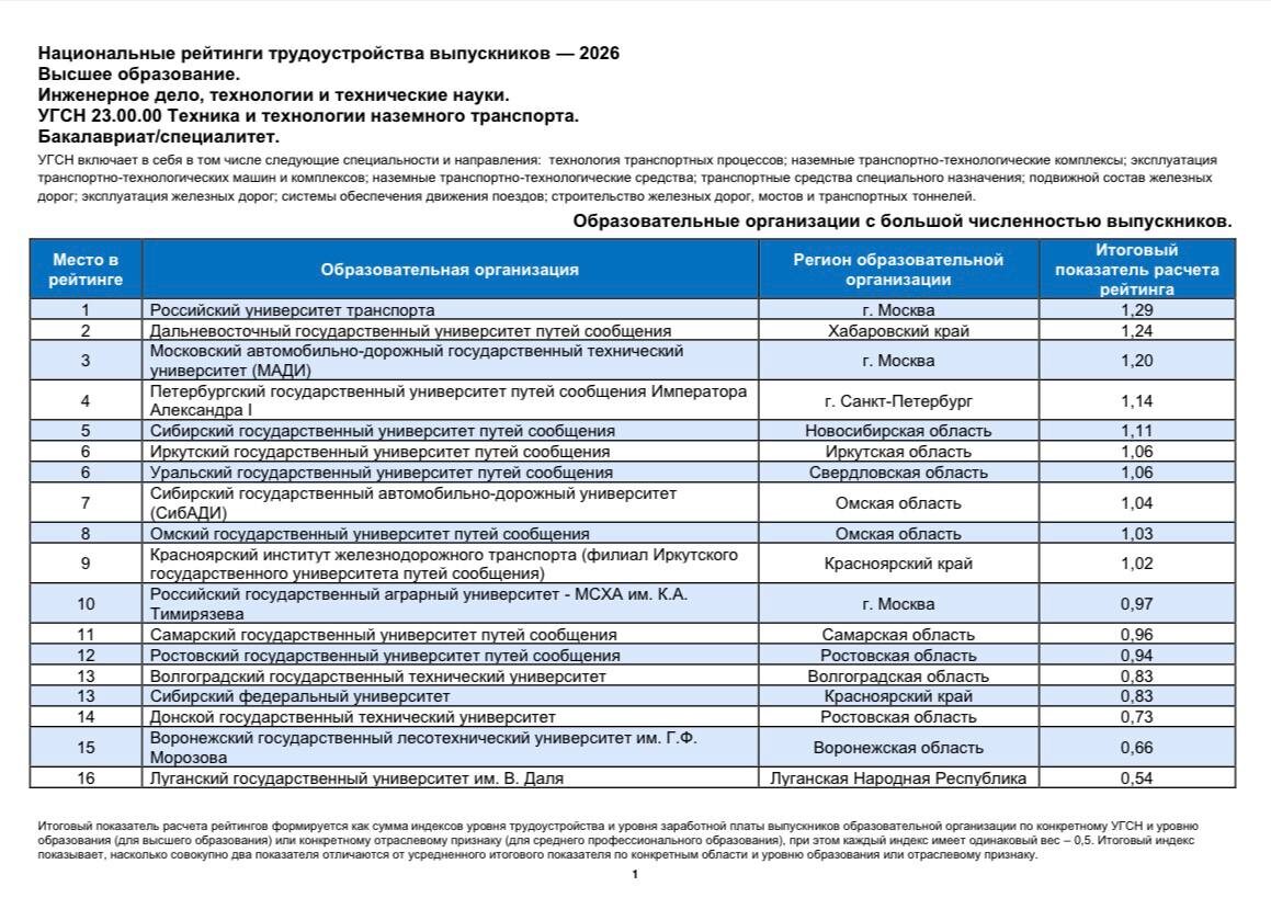 ! 🔝 2 место в Национальном рейтинге трудоустройства выпускников — 2026! Мы гордимся результатом, который подтверждает главное: образование, полученное в ДВГУПС это уверенный старт и надежная дорога в будущее! Это прямой показатель того, что качество нашей подготовки отвечает самым высоким требованиям времени. Это главное признание того, что наше образование КАЧЕСТВЕННОЕ, СОВРЕМЕННОЕ и ВОСТРЕБОВАННОЕ! Работодатели ценят наших выпускников за фундаментальную подготовку и реальные навыки, полученные уже в процессе учебы. 🚂 Мы не просто выдаем документы об образовании, мы прокладываем для наших студентов путь к успешной карьере.