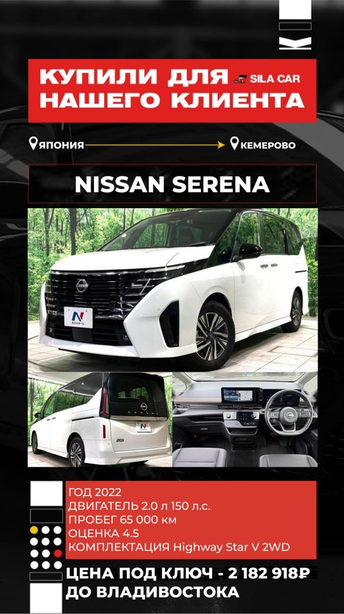 🔥 Никаких скрытых комиссий ❗️️Работаем строго по договору ┏ Реально честная комиссия: ┣ 50 000₽ на авто до 1 млн ₽ ┣ От 1 до 2,5 млн. ₽ - 70.000₽ ┗ От 2,5 млн. ₽ - 100.000₽ САМЫЕ ЧЕСТНЫЕ ЦЕНЫ НА РЫНКЕ ⬇️ Объём двигателя, см3 2000 Цена "на кнопке" ¥2 150 000 1 156 700,00 ₽ Комиссия экспортёра, транспортировка по Японии ¥100 000 53 800,00 ₽ Расходы по Японии, обход санкций ¥165 000 88 770,00 ₽ Фрахт $2 500 209 000,00 ₽ Итого стоимость по инвойсу ¥2 821 000 1 523 698,00 ₽ Ставка таможенного платежа 513 020,52 ₽ Тип силовой установки Топливо или параллельный гибрид Суммарная мощность, кВт 0,00 0 л.с. Утилизационный сбор* р.5 200,00 Брокерские услуги, СВХ, погрузо-разгрузочные работы, прохождение лаборатории р.65 000,00 Приёмка и забор автомобиля с СВХ, доставка до лаборатории, доставка до стоянки р.10 000,00 Честная комиссия СИЛА КАР р.70 000,00 Итого во Владивостоке: 2 182 918,52 ₽ 🔴Купил старший менеджер Дмитрий 📱+7(908) 979-36-92 📱 @SilaCarDm 👉Для Р