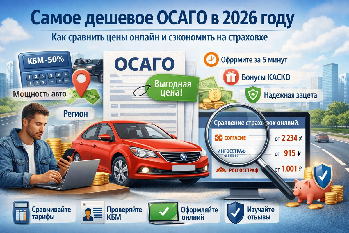Самое дешевое ОСАГО в 2026 году — как сравнить цены онлайн и сэкономить на страховке. Как найти самое дешевое ОСАГО в 2026 году: сравнение цен, коэффициенты, советы по экономии, онлайн-калькуляторы и выбор надежной страховой компании.