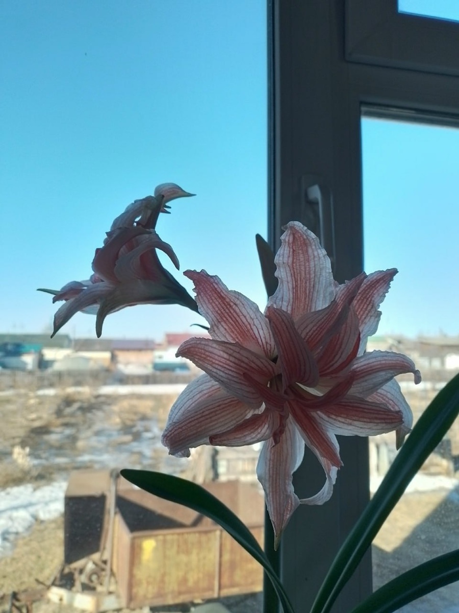 ! 🌸❄️ Я к вам снова со своим красавцем амариллисом! У него зацвёл второй бутон - красоты стало в два раза больше 🥰 Такая радость на подоконнике! А день сегодня обещают холодный: на градуснике всего -5, дует очень холодный ветер. Но при этом светит яркое солнце ☀️ Весна такая разная: и цветы, и мороз, и солнце - всё сразу. Хорошего всем дня и тёплого настроения! #амариллис #цветынаподоконнике #весна #солнце #сибирячканаталья