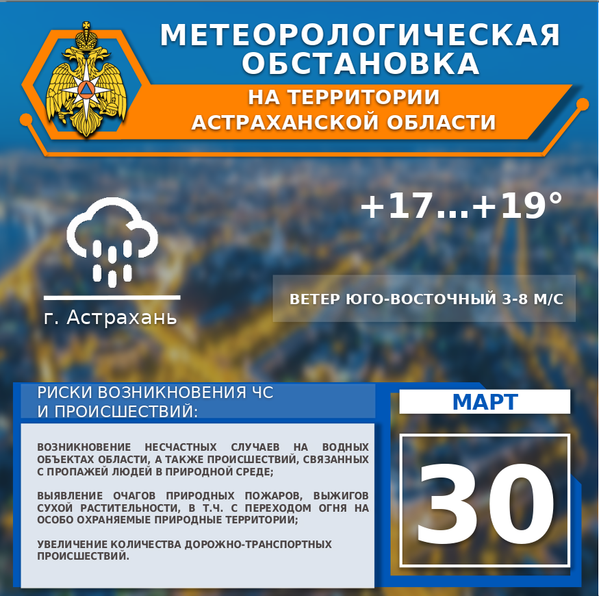 По г. Астрахань: облачно с прояснениями. Слабый дождь.