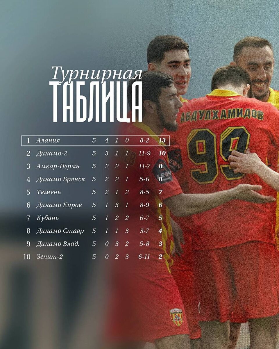 ФК “Алания” на первом месте в турнирной таблице по итогам пятого тура третьего сезона дивизиона «А» второй лиги России по футболу.