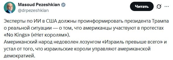 Американский народ устал от того, что израильские короли управляют американской демократией — президент Ирана Пезешкиан