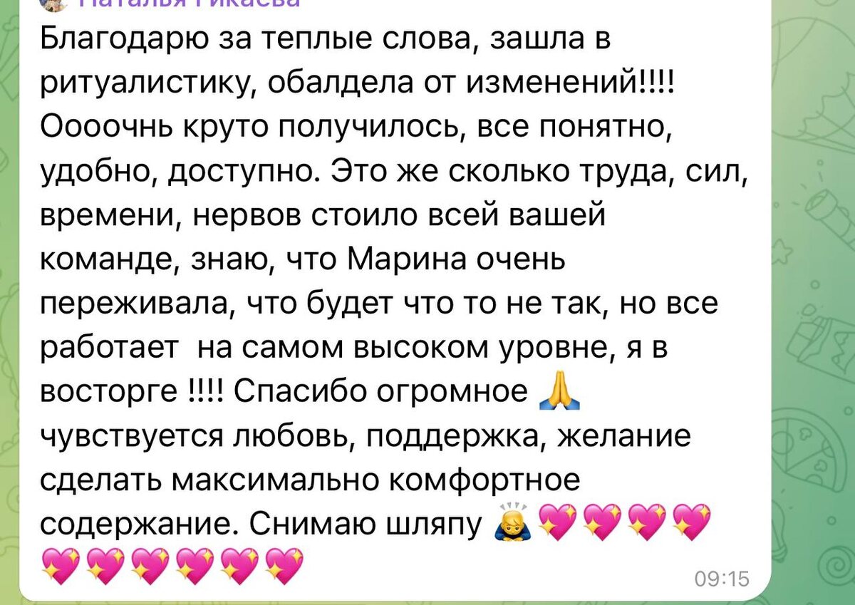 Благодарю, очень приятно! Напоминаю: остался последний день — после этого я закрою доступ к закрытому чату. https://marinavain.ru/ritualistchat