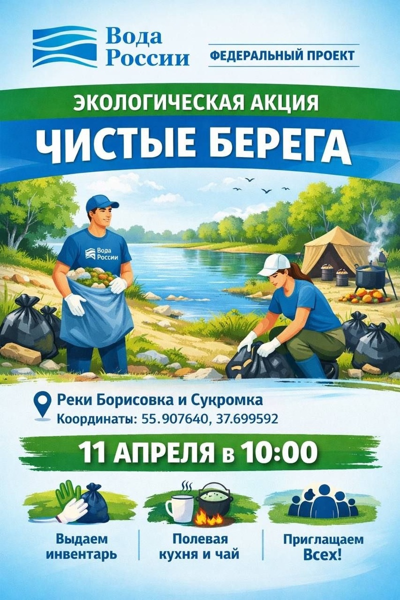 ». Первая акция в этом году состоится 11 апреля в 10:00 на берегах рек Борисовка и Сукромка. 📍 Координаты точки сбора: 55.907640, 37.699592 ✉️Прислать новость 📲Не грузит, есть MAX