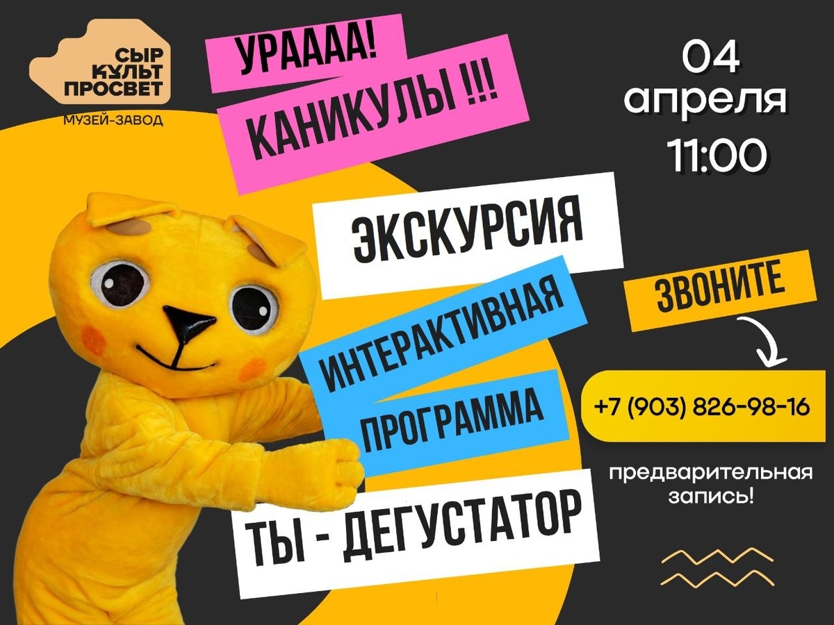 !🎉 04 апреля в 11:00 приглашаем детей и родителей на незабываемую программу в наш СырКультПросвет! Вас ждёт: 🐯 Встреча с Сырником — самым обаятельным музейным котом, который знает все секреты сыра и любит фотографироваться! 🚀 Интерактивная экскурсия «Сыр — начало космической истории Углича» — узнайте, как Угличский сыр связан с покорением космоса и историей нашего города! 👩🚀 Игровая программа «Почувствуй себя космонавтом» с дегустацией вкуснейшей сладкой сливочной пасты — заряд энергии для будущих покорителей Вселенной! 👩🎓 Интерактивная образовательная программа «Научный эксперимент. Я — дегустатор» — научитесь различать вкусы и ароматы, как настоящий сырный сомелье! 🎁 Мастер-класс по изготовлению сырной коробочки с тайным посланием внутри — создайте свой уникальный сувенир и заберите его домой! Ждём вас в мире сыра, культуры и космических открытий: 📅 04 апреля в 11:00 📍 Музей «СырКультПросвет», Углич 📜Стоимость программы 250 рублей ☎ Для записи и подробной информации