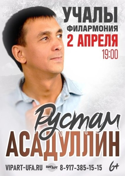 У нас в гостях Рустам АСАДУЛЛИН Рустам Асадуллин композитор и автор-исполнитель, обладатель неповторимого бархатного лирического баритона. Завоевал сердца слушателей песней «Яшьлегем», которая стала самой популярной песней 2024 года в татарской эстраде! На концертах все будет по-простому и в то же время очень по родному. Чарующий шарм неповторимого голоса Рустама подарит зрителям новые, возможно когда-то забытые, трепетные эмоции! Вас ожидают красивые песни, прекрасные композиции, живое инструментальное исполнение от удивительно талантливого исполнителя! Добро пожаловать! Нач. 19:00 Билеты в продаже в кассе Учалинской филармонии, цена 1200 р. Касса работает в будние дни с 10:00 до 19:00, перерыв14:00-15:00 Билеты онлайн — clck.ru/3S6RYW Справки по 8 347 912-06-24, 8 964 960-74-73 Источник https://uchaly102.ru/?p=131051