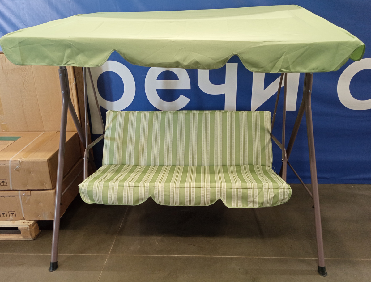 Цена бюджетная 6999 рублей. Размеры 170х110х153 см. Качели с навесом. Трёхместные, выдерживают вес до 260 кг.