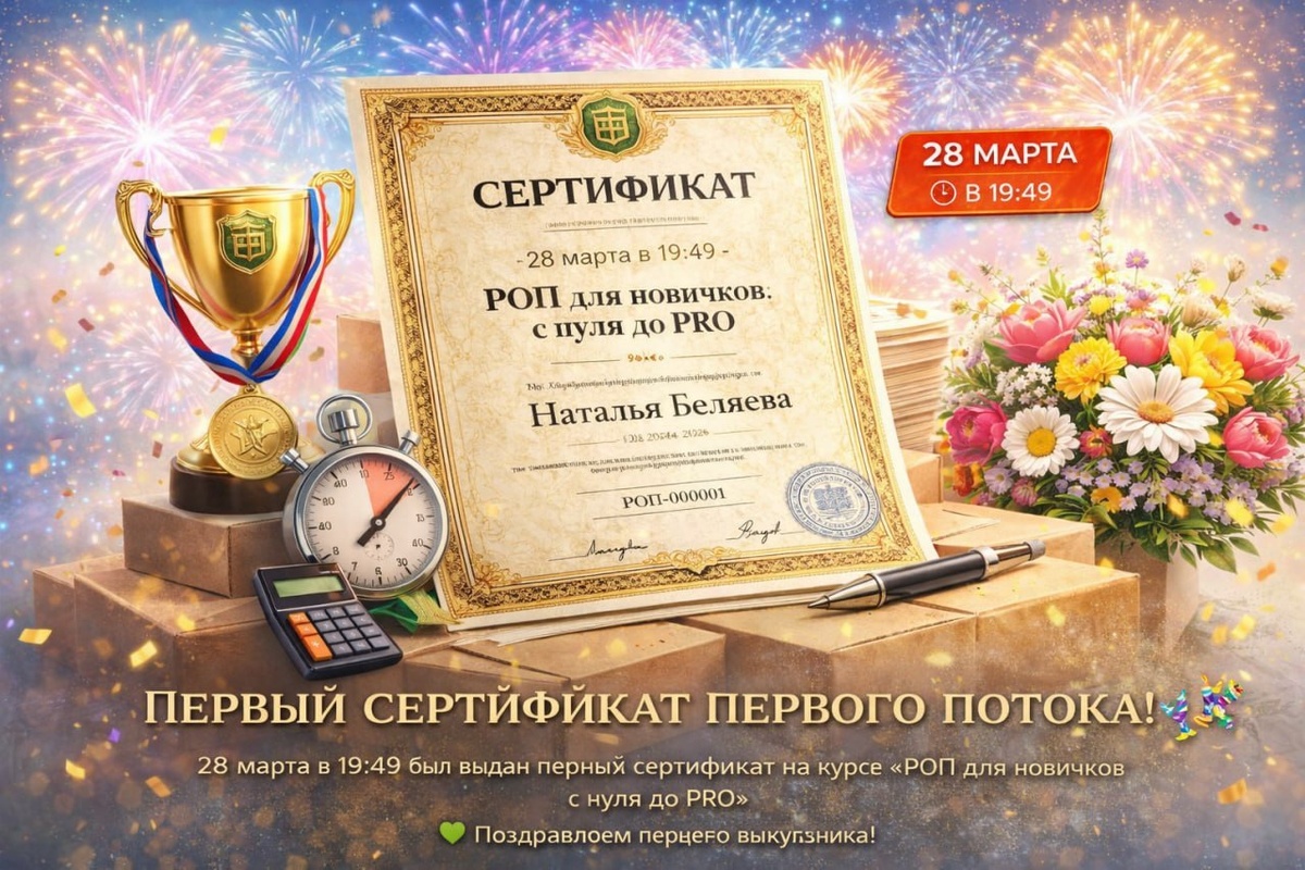 👩🎓 Это очень важный и по-настоящему приятный момент для нас. 28 марта в 19:49, на курсе «РОП для новичков: с нуля до PRO» был выдан первый сертификат первого потока. Это значит, что кто-то уже не просто начал, не просто “сохранил обучение на потом”, а действительно дошёл до финала, прошёл путь и завершил курс. И это очень ценно 💚 Потому что тема РОП — не из лёгких. Здесь много логики, нюансов, непростых развилок и моментов, которые не всегда можно понять с первого раза. Именно поэтому каждый, кто проходит курс до конца, — это не “галочка”, а реальный результат. Поздравляем первого выпускника первого потока! 🎉 И очень ждём, когда таких сертификатов станет всё больше. Для нас это не просто обучение. Это история про то, как сложная тема становится понятнее, структурнее и спокойнее для специалистов, которые хотят действительно разобраться. А мы тем временем уже готовимся ко 2 потоку, который стартовал сегодня, 30 марта 🚀 Если вы ещё думаете, заходить или нет — самое время