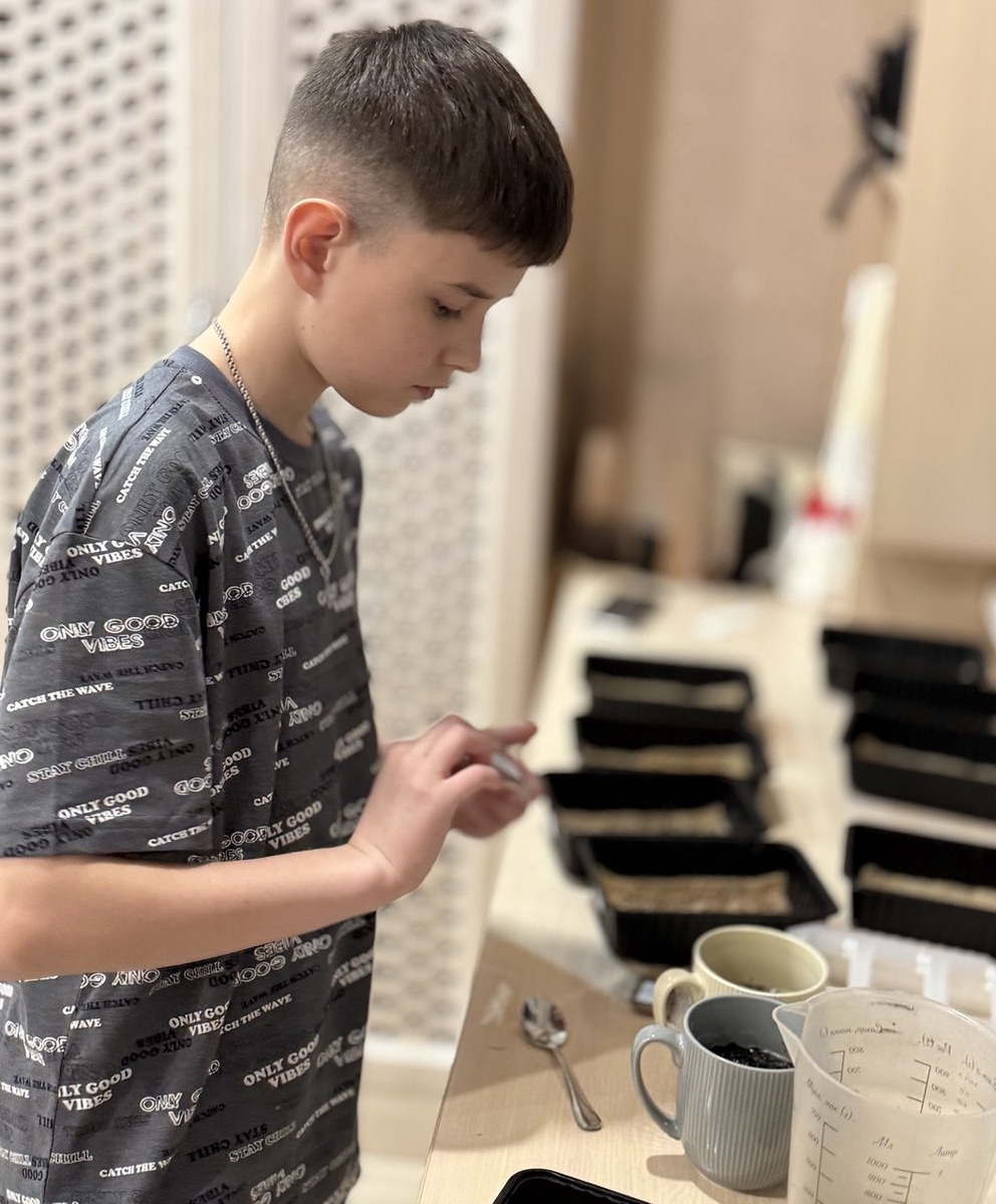 Даниил вдруг воспылал страстью к сельскому хозяйству в миниатюре — попросил купить ему семена микрозелени. Благо, маркетплейсы не дремлют и готовы удовлетворить любые наши внезапные порывы к агрономическому творчеству.