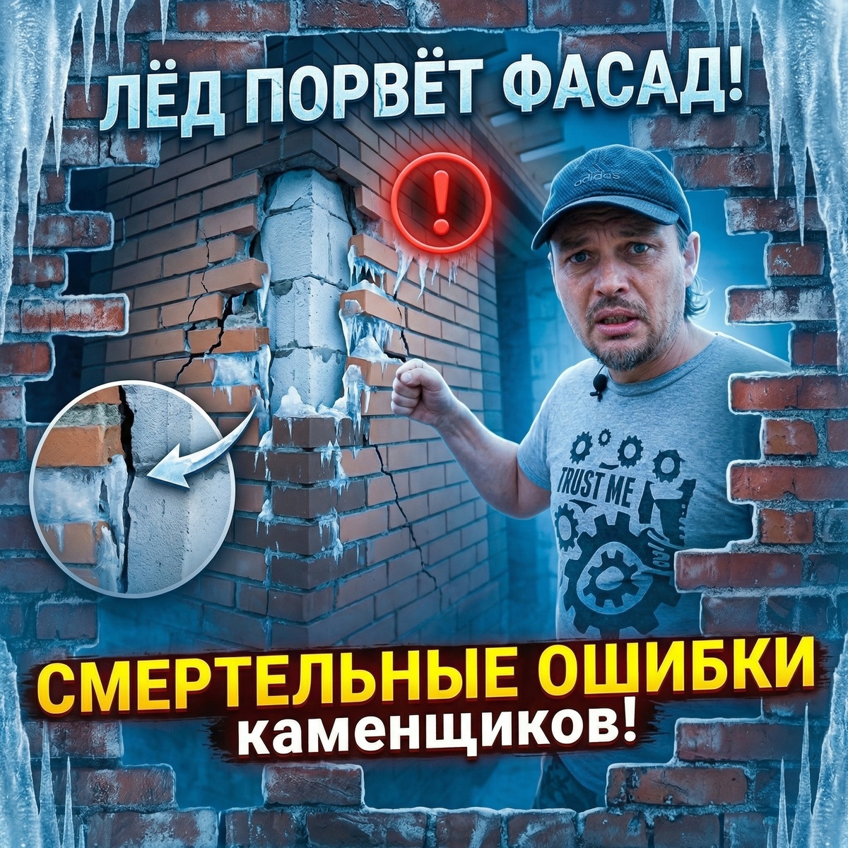 Воздух в отапливаемом жилом помещении содержит водяной пар. Проходя сквозь пористый газобетон, пар упирается в плотный керамический кирпич. Если зазора нет, влага выпадает конденсатом внутри конструкции (точка росы). Зимой вода замерзает, расширяется на 9% и физически отрывает лицевую часть кирпича (отстрел керамики).