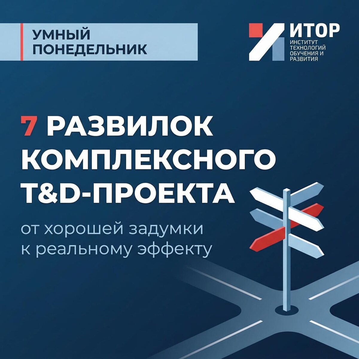 На старте многие комплексные T&D-проекты выглядят вполне убедительно. Есть хорошая идея. Есть понятная задача. Иногда есть и поддержка со стороны руководства, и собранная команда, и ощущение, что проект действительно может сдвинуть что-то в организации. Но на практике один проект даёт результат, а другой так и остаётся хорошим замыслом, который не удалось довести до реального эффекта. Почему так происходит? Потому что всё решается не только на старте. У любого комплексного проекта есть развилки — моменты, в которых нужно особенно точно понимать, какую задачу он решает, где проходят его границы, на что он опирается внутри организации и хватит ли ресурса пройти путь до конца. Об этом — новый выпуск «Умного понедельника»: 7 развилок комплексного T&D-проекта: от хорошей задумки к реальному эффекту. И, наверное, ключевое здесь в том, что тема обучения и развития только на первый взгляд кажется давно знакомой. Мы слишком привыкли к этим словам и из-за этого часто не замечаем, какой объё
