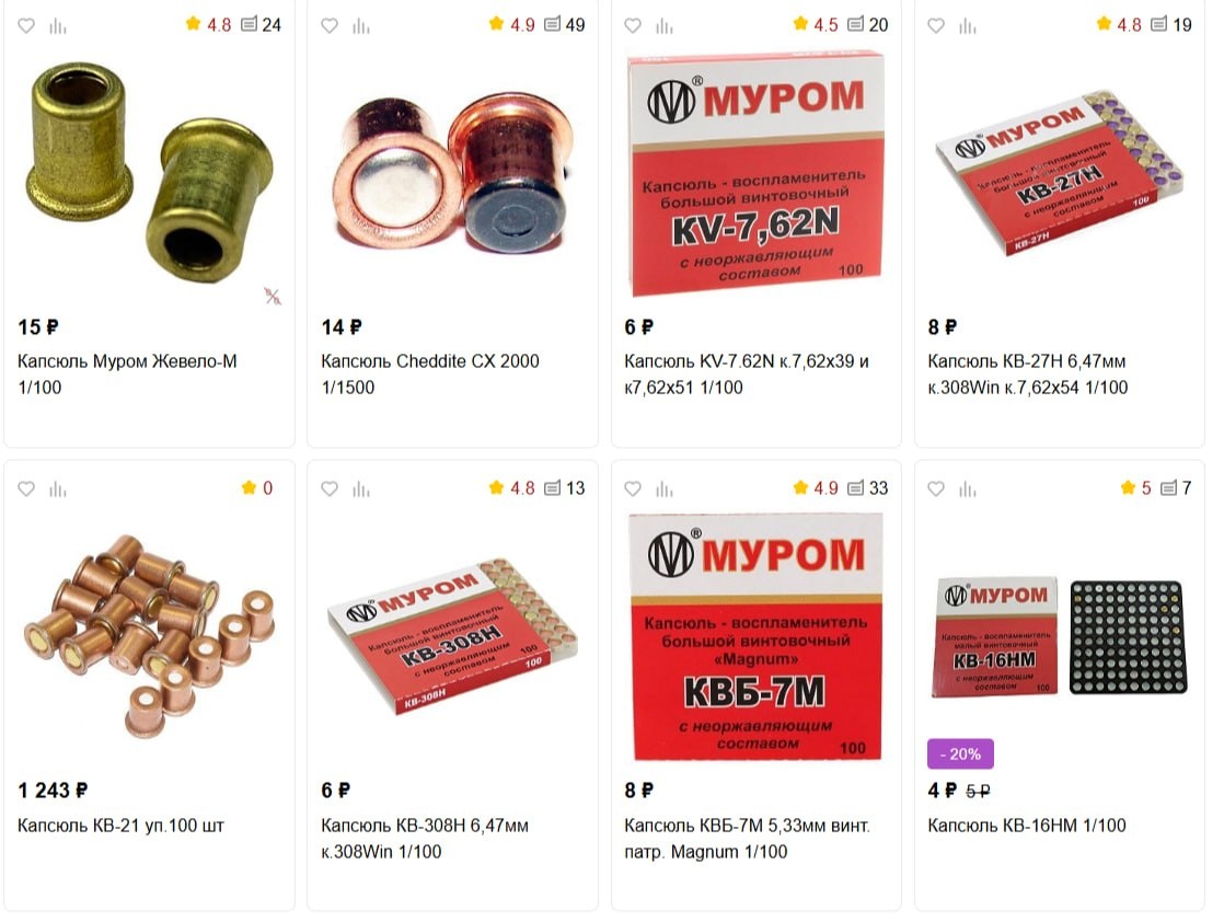 Цены ка капсюля в магазинах Мир Охоты