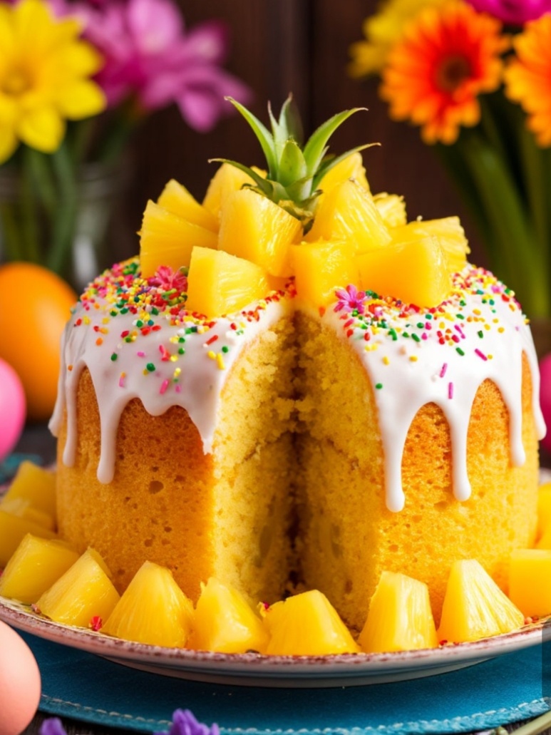 Кулич без дрожжей из творога и консервированных ананасов — невероятно мягкий, сочный и домашний по вкусу. Простой рецепт, который не требует долгого замешивания. Тесто получается влажным и пористым благодаря творогу, а ананасы придают лёгкую сладость и фруктовый оттенок. Сливочное масло придаёт выпечке глубину вкуса и настоящий «пирожковый» аромат, напоминающий старинные домашние торты.