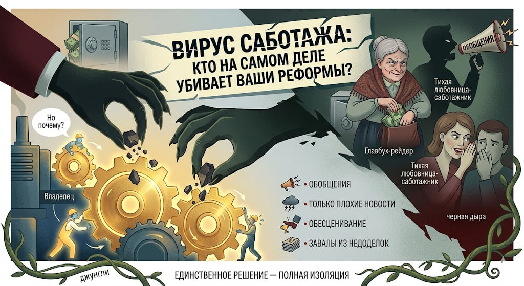 Проведите ревизию. Кто в вашем окружении постоянно «фонит» негативом и обобщениями? Чьё увольнение вы откладываете из жалости, пока ваш доход падает? Помните: спасая разрушителя, вы топите всех честных и способных сотрудников.