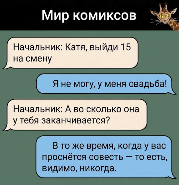Способность вовремя посмеяться над собой и своими опечатками — это лучший способ пережить любой рабочий день. Жизнь подкидывает нам массу поводов для иронии, превращая даже суровые выговоры в отличные истории для вечерних посиделок. Сегодня мы собрали для вас 9 смешных переписок из рабочих чатов, где босс всегда прав, а жить вне работы сотруднику совсем не обязательно! У каждого из нас есть свой внутренний компас, который помогает с юмором обходить любые углы в общении с начальством. Восхищаюсь теми, кто умеет виртуозно вертеть любыми временными рамками, превращая строгие поручения в историю, где главные правила диктует исключительно зов души и пустого желудка. Случайная отправка сообщения не в то окошко — это лучший способ моментально сблизиться с руководством. Сразу выясняется, что даже самое суровое начальство страсть как любит послушать захватывающие байки и готово на время забыть про дисциплину, лишь бы досмотреть этот импровизированный сериал до самого финала. Искусство быть иде