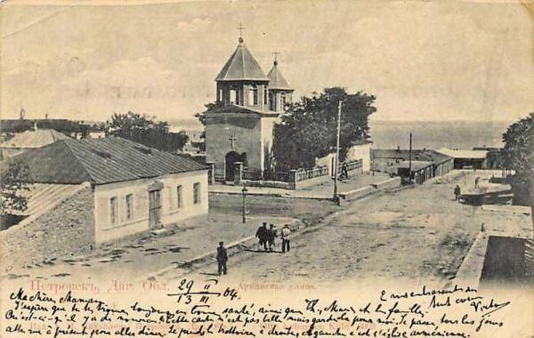 Земельный участок: Церковная территория располагалась на Армянской улице (смежно с казармами 21-й артиллерийской бригады). Параметры участка: 33,14 саж. по Армянской улице и 33,9 саж. по Соборной.