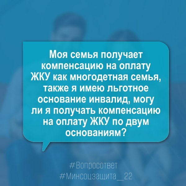 на оплату ЖКУ по двум основаниям? 💭Если в многодетной семье есть люди, имеющие право на социальные льготы по другим основаниям, компенсация предоставляется только по одному из них, на выбор. То есть член семьи, имеющий иное льготное основание (например, инвалидность, статус сельского педагога или специалиста и т.д.), может выбрать: получать компенсацию по своему основанию или в составе многодетной семьи. 📍Напомним, что подать заявления на предоставление государственной услуги «Компенсация расходов по оплате жилого помещения и жилищно-коммунальных услуг отдельным категориям граждан» на портале «Госуслуги» можно по этой ссылке https://clck.ru/Y9y7X *Вопрос поступил через систему "Инцидент менеджмент" #Алтайскийкрай #Минсоцзащита_22 #Вопросответ