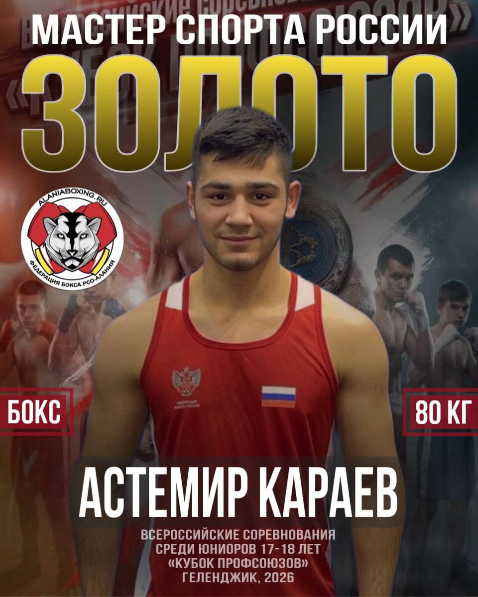 Дмитрия Пирога среди юниоров 17–18 лет в весовой категории до 80 кг в Кабардинке, Краснодарский край. Астемир также выполнил норматив «Мастер спорта России» по боксу. Поздравляем Астемира и его тренеров Павла Каркусова и Алана Биченова, б/клуб «Арс», Владикавказ, а также первого тренера Владимира Цагараева, б/клуб «Ас-боксинг», Алагир! Ура! (@ossetiaboxing)