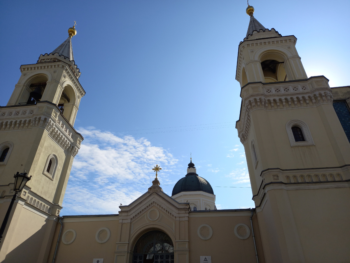 А справа через дорогу - высокие стены женского монастыря. И если бы не две узнаваемые колокольни, проскочила бы мимо.