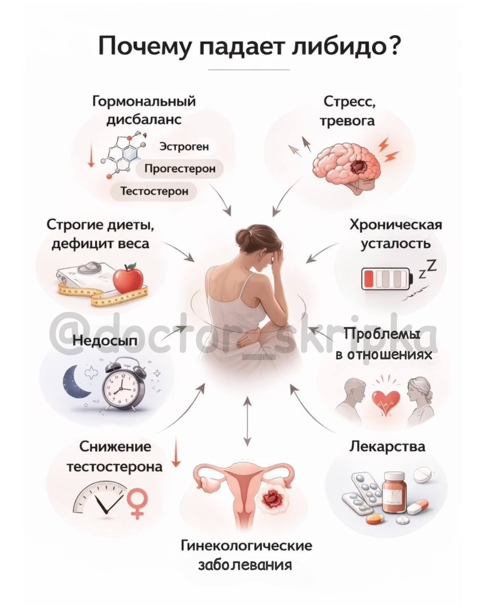 Снижение либидо — одна из самых частых и неловких тем. Но за ней почти всегда стоят конкретные причины: гормоны, усталость, стресс, лекарства, дефициты.